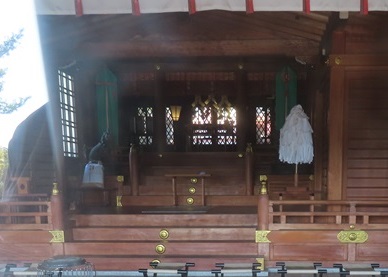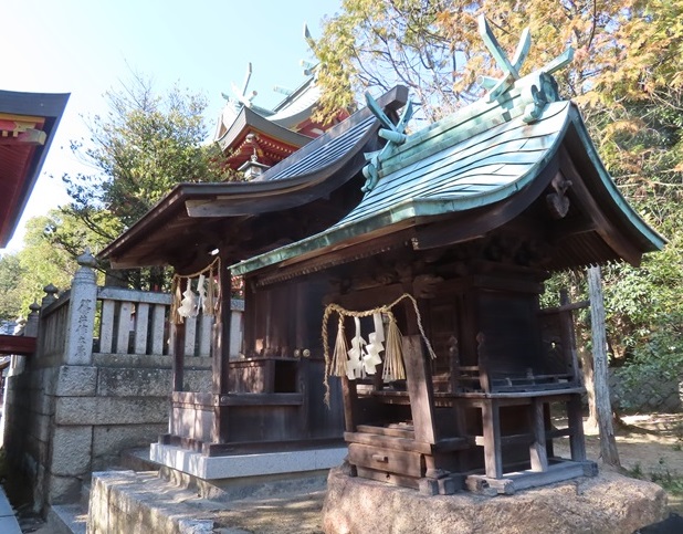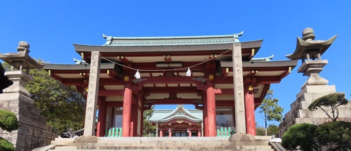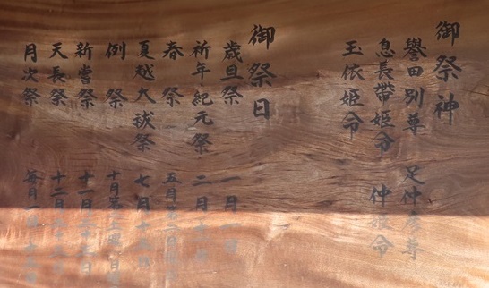 祭神は、譽田別尊(ほむだわけのみこと、応神天皇)、足仲彦天皇命(たらしなかつひこのすめらみこと、仲哀天皇)、息長帶姫命