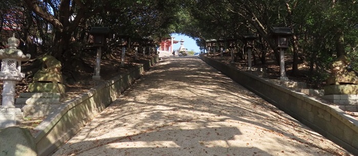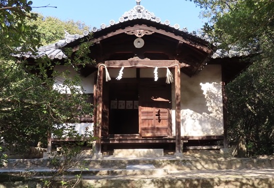 境内の社林はクスノキやウバメガシが中心となっており、林床には花崗岩のマサ(真砂土)が露出する。