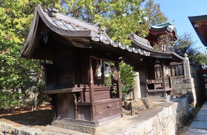 狛犬(和泉石製、建築年不詳)、社務所(木造、昭和初期建築)がある。