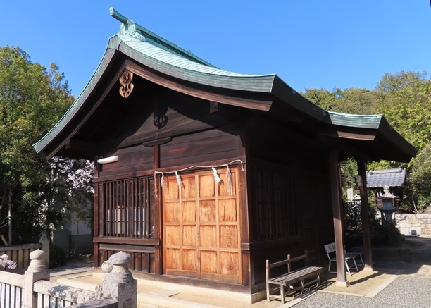 本殿は木造(欅材)、入母屋造平入檜皮葺。安永年間建築。
