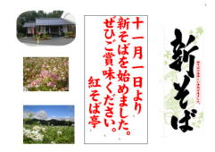 メニュー表 | 「紅そば亭」の営業時間 ☆ 午前11時〜午後2時まで ☆ 休業日 毎週火曜日、水曜日で す。 ☆ 年末は12月31日まで営業 ☆ 年始は変更があるので問い合 わせください。 | ||